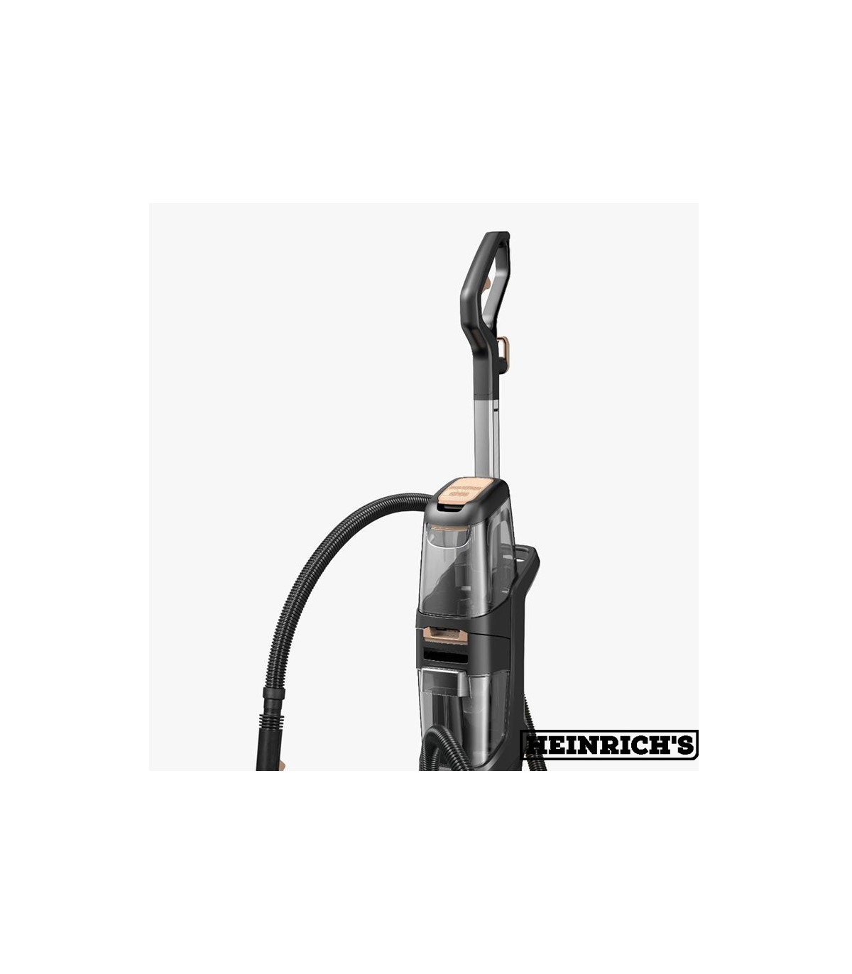 همانطور که در تصاویر مشاهده می کنید این فرش شور 8870 هنریچ به طراحی نسخه قبلی وفادار بوده و تقریبا به همان شکل طراحی شده است که در نوع خود زیبا و کلاسیک است و علاوه بر نشان دادن اصالت برند هنریچ خبر از مدرن بودن و حرفه ای بودن فرش شور نیز می دهد. بدنه این فرش شور از جنس پلاستیک فشرده ABS است که در برابر حرارت، رطوبت و بخار و همچنین ضربات فیزیکی بسیار مقاوم است و وزن دستگاه را کمتر کرده است تا راحت تر حمل و جابجا شود. دسته آن کاملا ارگونومیک است و می توان ارتفاع آن را تنظیم کرد لازم به ذکر است که به این نکته نیز اشاره کنیم که میله دسته از جنس آلومینیوم دای کست می باشد. مخازن آب تمیز و کثیف و مخزن شوینده از جنس تریتان نشکن و شفاف می باشند.