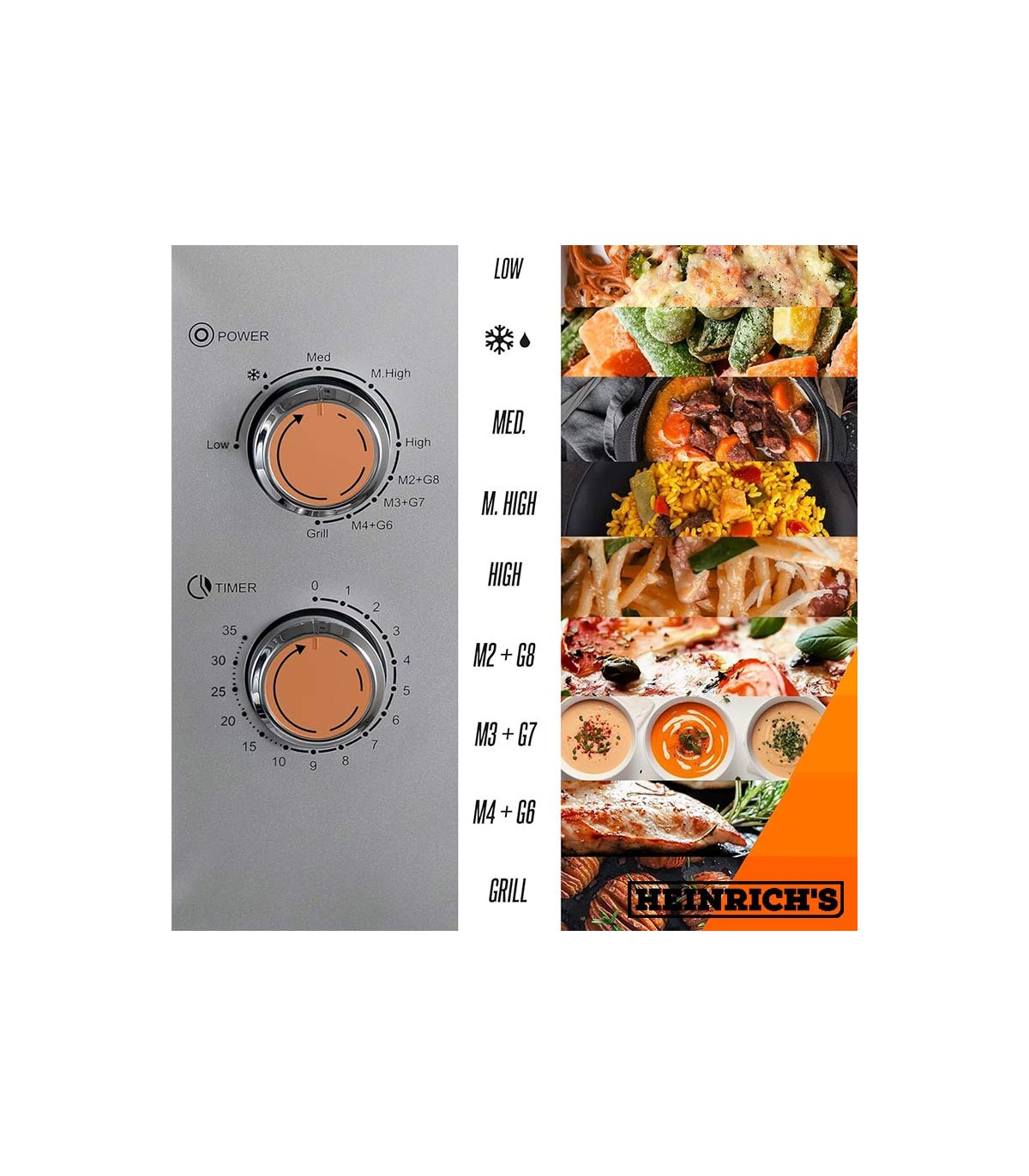 همانطور که در تصاویر مشاهده می کنید این مایکروویو نیز مجهز به دو ولوم چرخشی می باشد که یکی از آن ها برای تنظیمات دما و برنامه های مایکروویو می باشد و دیگری برای تنظیم تایمر. تایمر این مایکروویو 8846 هنریچ 35 دقیقه ای می باشد. برنامه های مایکروویو 8846 شامل: یخ زدایی، تنظیم دما در 7 سطح مختلف برای غذا های مختلف و عملکرد گریل می باشد. نکته برجسته مایکروویو 8846 عملکرد گریل داخلی است که به شما امکان می دهد غذا های خود را سریعتر گرم کنید.