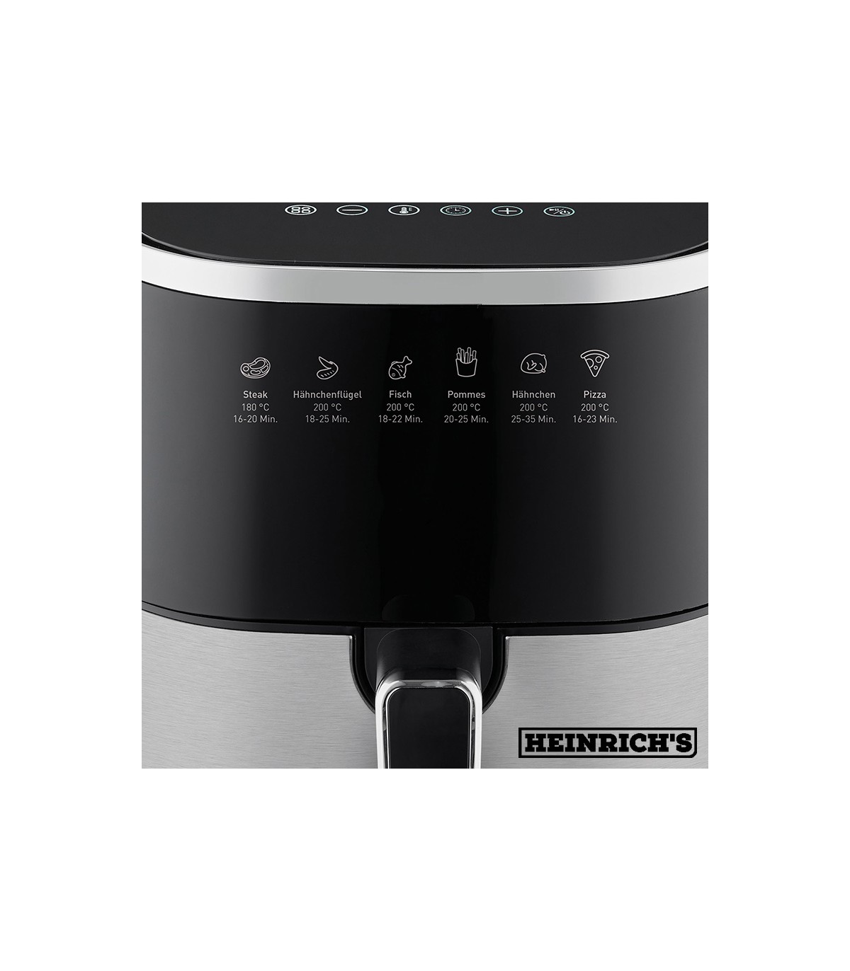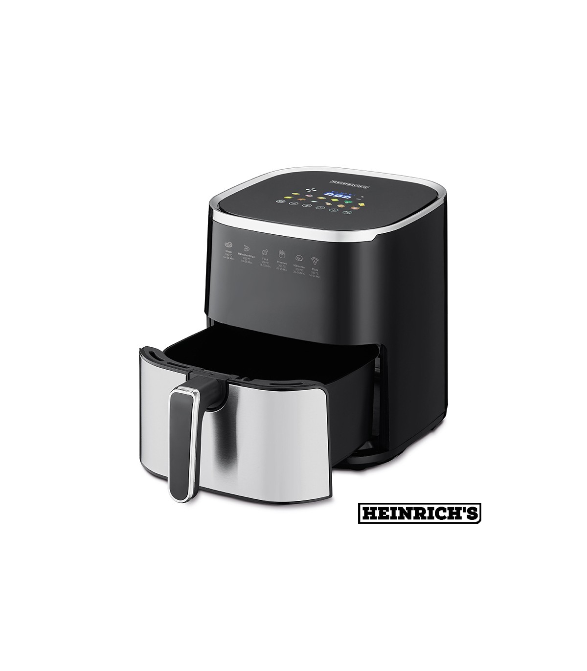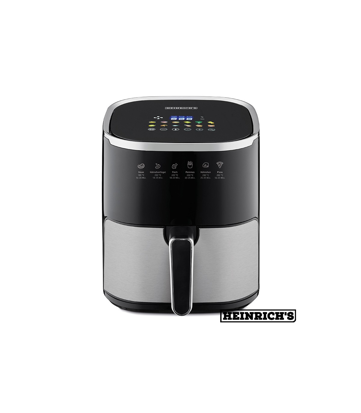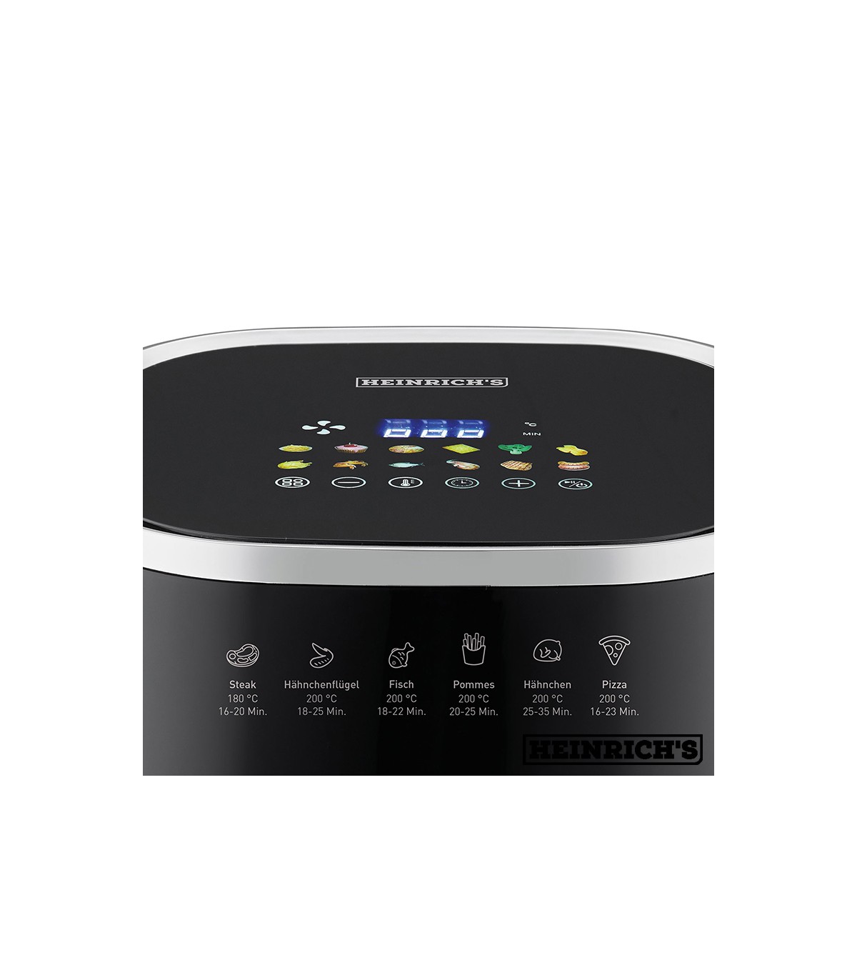 همانطور که در تصویر مشاهده می کنید این سرخ کن مجهز به یک صفحه نمایش LED می باشد که دما و زمان را نشان می دهد همچنین کنترل پنل آن کاملا لمسی می باشد و دارای تنظیمات دما در محدوده 80-200 درجه سانتی گراد، تایمر، عملکرد گرم نگه دار و گرم کردن دوباره، عملکرد یخ زدایی، سیستم هشدار صوتی و 12 دستور پخت اتوماتیک می باشد که با انتخاب آن ها دما و زمان دستگاه به صورت خودکار تنظیم می شود