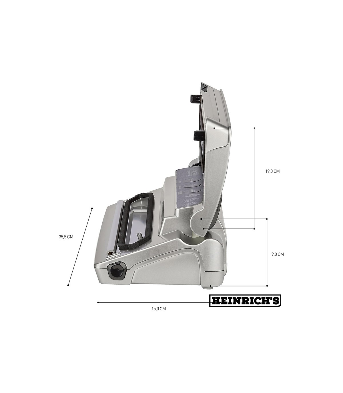 توان مصرفی این سیلر خلاء جدید هنریچ معادل 120 وات می باشد که قدرت کافی برای مکش هوا را به دستگاه می دهد و از طرفی به دلیل اینکه فرایند بسته بندی سریع تر انجام می شود مصرف انرژی نیز کاهش می یابد. این سیلر صدای کمی دارد و در حین کار مزاحمتی ایجاد نمی کند. علاوه بر این سیلر نیز مجهز به سیستم ایمنی مداری و خاموش شدن اتوماتیک می باشد و طول عمر بالایی دارد